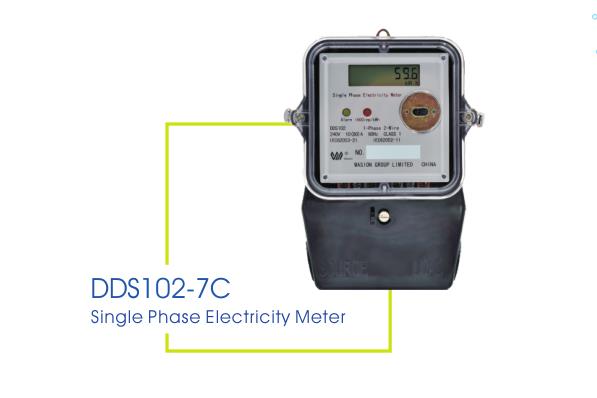 DDS102-7C is a single phase two wires class 1 static electricity meter that has been designed to meet the latest IEC standards and requirements of electricity utilities.